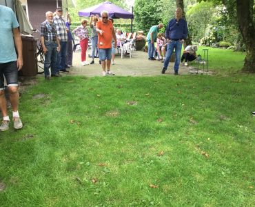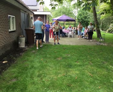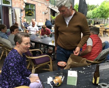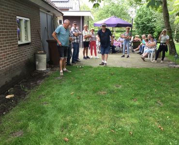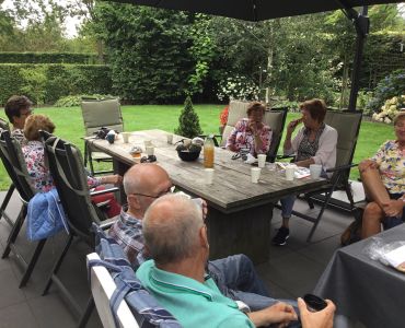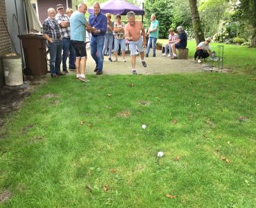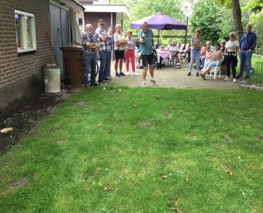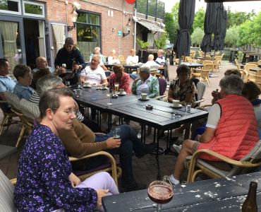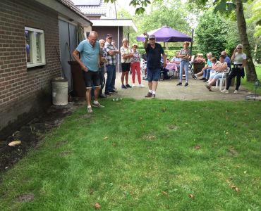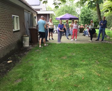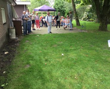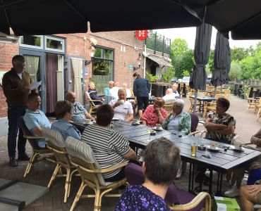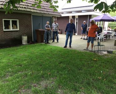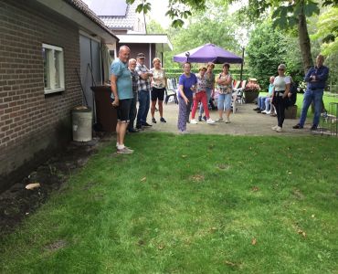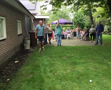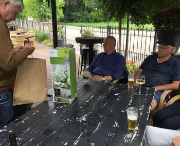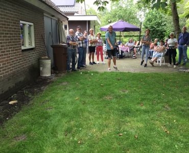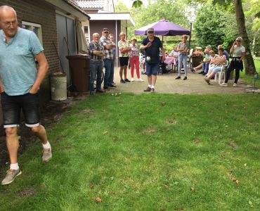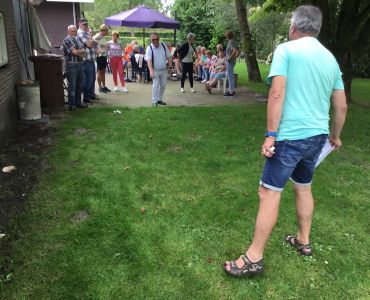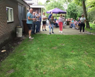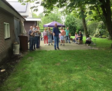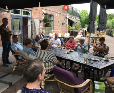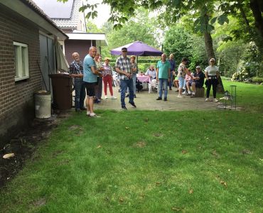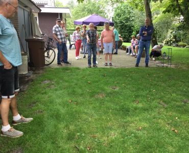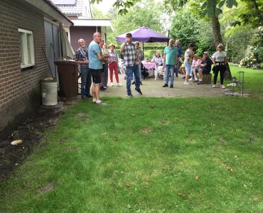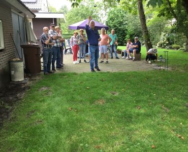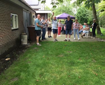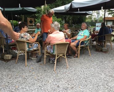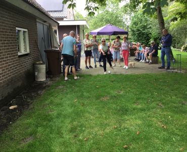 Zaterdag 27 juli hebben we hem weer gefietst: Onze jaarlijkse fietstoertocht. We hadden de keuze tussen twee data maar omdat er op de eerste datum een stuk minder mensen hadden ingeschreven zijn we voor de tweede datum gegaan. Wat het weer betreft was dit een goede keus. Om ± 10:30 uur zijn we bij Suus op de Oirschotseweg vertrokken. Door de wijk heuveleind zijn we naar het kanaal gefietst om zo richting Oirschot te gaan. We zijn toen via landgoed Baest naar Oost-West en Middelbeers gefietst. Daar hebben we in de tuin van Lunchroom Meesterlijk in Middelbeers koffie gedronken met een lekker stuk gebak. Daarna zijn we terug naar Oirschot gefietst waar we richting H. Eik zijn gefietst. We zijn daar niet gestopt want er was op een andere plek afgesproken. Dit was een eindje voorbij de H. Eik bij een broer van Rikie van Toon van der Heijden. Hier was een luidruchtig ontvangst door de honden die op het erf in een hondenhok zaten. Er stonden voor ons volop stoelen en tafels klaar en de koffie en thee was ook vers gezet. We konden daar fijn onze zelf meegebrachte boterhammen opeten en Jan Veraa had zoals ieder jaar voor vers geperste jus Orange gezorgd. Gesponsord door de PLUS in Heivelden. Na de lunch hebben we een soort jeu de boules gedaan en daarna een quiz het leken allemaal makkelijke vragen maar dat viel nog best tegen. De uitslag zou ‘s avonds bekend gemaakt worden. Nadat we alles zo’n beetje opgeruimd hadden zijn we weer op de fiets gestapt en zo zijn we bij de volgende activiteit terecht gekomen. Dit was viskwekerij “de stroom” niet zo heel ver fietsen van ons vorige punt. Hier kregen we van Jack van der Schoot uitleg over het kweken van de meerval en daarna hebben we een rondleiding gehad. Hier had hij nogal wat faciliteiten voor meerdere activiteiten. Maar wel alles op de natuurlijke duurzame manier. Hij liet zelfs kikkers op een stukje vloerbedekking springen wat ie aan een hengel had bevestigd. Nadat we dit allemaal bewonderd hadden zijn we nog even lekker onder de parasol gaan zitten en hebben daar nog een drankje genomen. Van daaruit zijn we langzaam aan naar huis gefietst om onze vogels te voeren en even op te frissen zodat we om 18:00 uur weer bij d’n Ekker konden zijn. daar hebben we nog een gezellige avond gehad met een koud en warm buffet en een drankje. Het eten was weer van ouds zoals we gewend zijn van Netty. Om 22:00 uur sloten we een gezellige en volmaakte dag af.