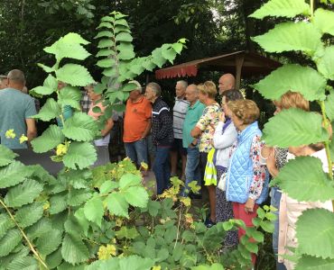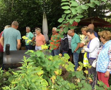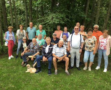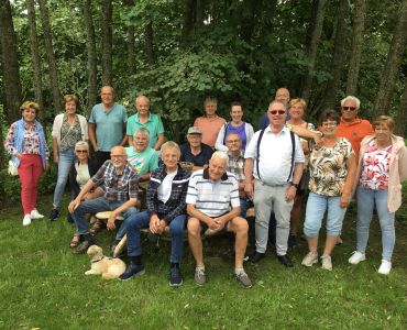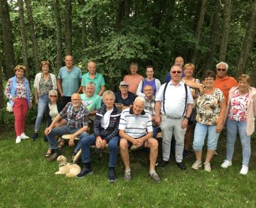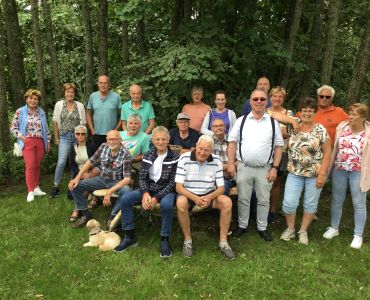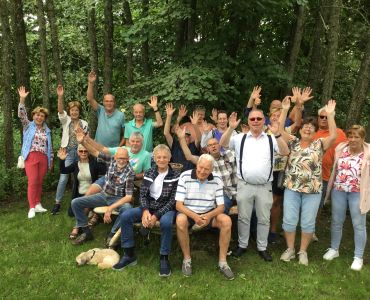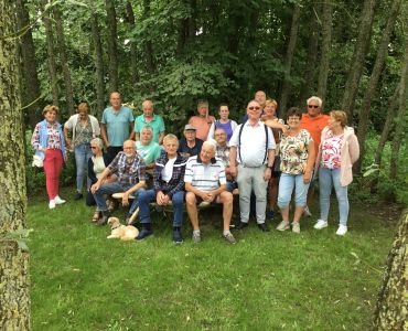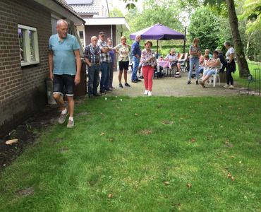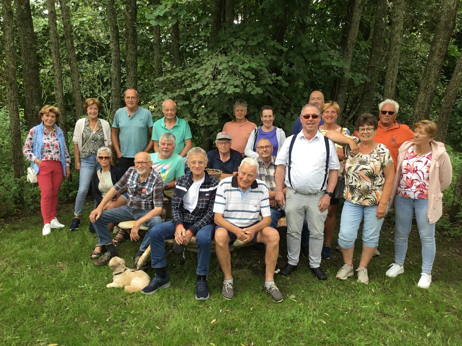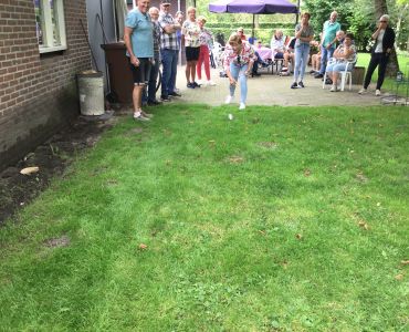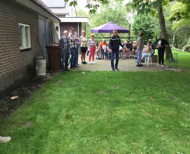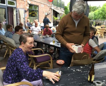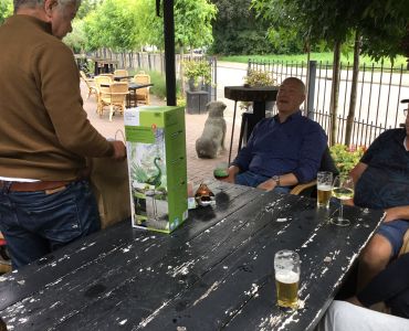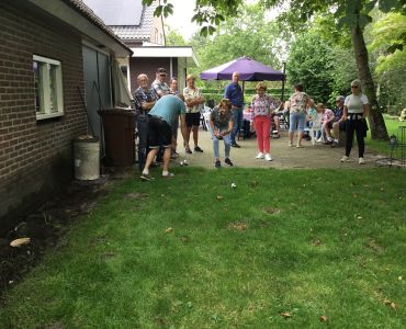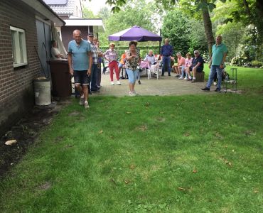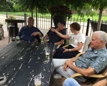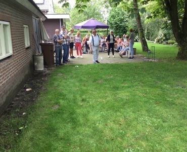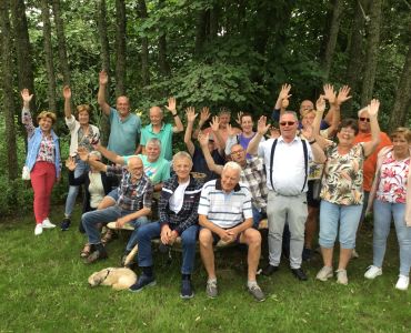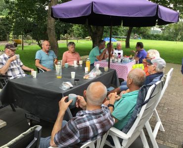 Zaterdag 27 juli hebben we hem weer gefietst: Onze jaarlijkse fietstoertocht. We hadden de keuze tussen twee data maar omdat er op de eerste datum een stuk minder mensen hadden ingeschreven zijn we voor de tweede datum gegaan. Wat het weer betreft was dit een goede keus. Om ± 10:30 uur zijn we bij Suus op de Oirschotseweg vertrokken. Door de wijk heuveleind zijn we naar het kanaal gefietst om zo richting Oirschot te gaan. We zijn toen via landgoed Baest naar Oost-West en Middelbeers gefietst. Daar hebben we in de tuin van Lunchroom Meesterlijk in Middelbeers koffie gedronken met een lekker stuk gebak. Daarna zijn we terug naar Oirschot gefietst waar we richting H. Eik zijn gefietst. We zijn daar niet gestopt want er was op een andere plek afgesproken. Dit was een eindje voorbij de H. Eik bij een broer van Rikie van Toon van der Heijden. Hier was een luidruchtig ontvangst door de honden die op het erf in een hondenhok zaten. Er stonden voor ons volop stoelen en tafels klaar en de koffie en thee was ook vers gezet. We konden daar fijn onze zelf meegebrachte boterhammen opeten en Jan Veraa had zoals ieder jaar voor vers geperste jus Orange gezorgd. Gesponsord door de PLUS in Heivelden. Na de lunch hebben we een soort jeu de boules gedaan en daarna een quiz het leken allemaal makkelijke vragen maar dat viel nog best tegen. De uitslag zou ‘s avonds bekend gemaakt worden. Nadat we alles zo’n beetje opgeruimd hadden zijn we weer op de fiets gestapt en zo zijn we bij de volgende activiteit terecht gekomen. Dit was viskwekerij “de stroom” niet zo heel ver fietsen van ons vorige punt. Hier kregen we van Jack van der Schoot uitleg over het kweken van de meerval en daarna hebben we een rondleiding gehad. Hier had hij nogal wat faciliteiten voor meerdere activiteiten. Maar wel alles op de natuurlijke duurzame manier. Hij liet zelfs kikkers op een stukje vloerbedekking springen wat ie aan een hengel had bevestigd. Nadat we dit allemaal bewonderd hadden zijn we nog even lekker onder de parasol gaan zitten en hebben daar nog een drankje genomen. Van daaruit zijn we langzaam aan naar huis gefietst om onze vogels te voeren en even op te frissen zodat we om 18:00 uur weer bij d’n Ekker konden zijn. daar hebben we nog een gezellige avond gehad met een koud en warm buffet en een drankje. Het eten was weer van ouds zoals we gewend zijn van Netty. Om 22:00 uur sloten we een gezellige en volmaakte dag af.