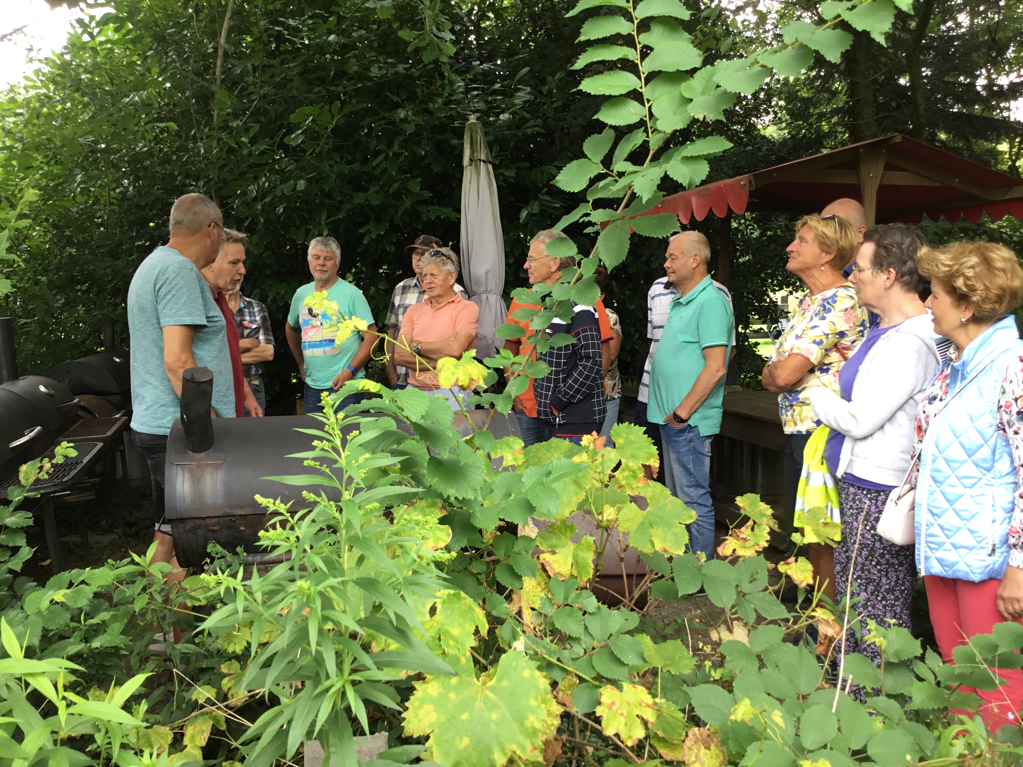 Zaterdag 27 juli hebben we hem weer gefietst: Onze jaarlijkse fietstoertocht. We hadden de keuze tussen twee data maar omdat er op de eerste datum een stuk minder mensen hadden ingeschreven zijn we voor de tweede datum gegaan. Wat het weer betreft was dit een goede keus. Om ± 10:30 uur zijn we bij Suus op de Oirschotseweg vertrokken. Door de wijk heuveleind zijn we naar het kanaal gefietst om zo richting Oirschot te gaan. We zijn toen via landgoed Baest naar Oost-West en Middelbeers gefietst. Daar hebben we in de tuin van Lunchroom Meesterlijk in Middelbeers koffie gedronken met een lekker stuk gebak. Daarna zijn we terug naar Oirschot gefietst waar we richting H. Eik zijn gefietst. We zijn daar niet gestopt want er was op een andere plek afgesproken. Dit was een eindje voorbij de H. Eik bij een broer van Rikie van Toon van der Heijden. Hier was een luidruchtig ontvangst door de honden die op het erf in een hondenhok zaten. Er stonden voor ons volop stoelen en tafels klaar en de koffie en thee was ook vers gezet. We konden daar fijn onze zelf meegebrachte boterhammen opeten en Jan Veraa had zoals ieder jaar voor vers geperste jus Orange gezorgd. Gesponsord door de PLUS in Heivelden. Na de lunch hebben we een soort jeu de boules gedaan en daarna een quiz het leken allemaal makkelijke vragen maar dat viel nog best tegen. De uitslag zou ‘s avonds bekend gemaakt worden. Nadat we alles zo’n beetje opgeruimd hadden zijn we weer op de fiets gestapt en zo zijn we bij de volgende activiteit terecht gekomen. Dit was viskwekerij “de stroom” niet zo heel ver fietsen van ons vorige punt. Hier kregen we van Jack van der Schoot uitleg over het kweken van de meerval en daarna hebben we een rondleiding gehad. Hier had hij nogal wat faciliteiten voor meerdere activiteiten. Maar wel alles op de natuurlijke duurzame manier. Hij liet zelfs kikkers op een stukje vloerbedekking springen wat ie aan een hengel had bevestigd. Nadat we dit allemaal bewonderd hadden zijn we nog even lekker onder de parasol gaan zitten en hebben daar nog een drankje genomen. Van daaruit zijn we langzaam aan naar huis gefietst om onze vogels te voeren en even op te frissen zodat we om 18:00 uur weer bij d’n Ekker konden zijn. daar hebben we nog een gezellige avond gehad met een koud en warm buffet en een drankje. Het eten was weer van ouds zoals we gewend zijn van Netty. Om 22:00 uur sloten we een gezellige en volmaakte dag af.
